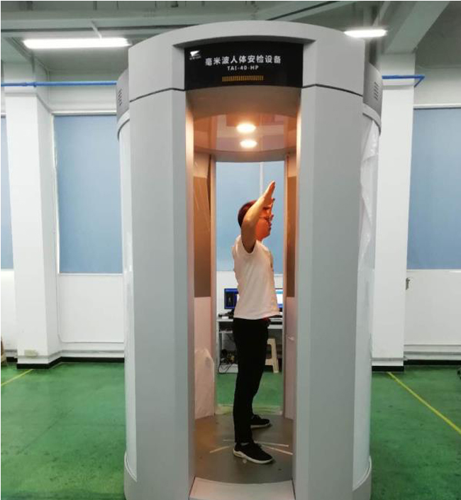 據了解,華訊方舟太赫茲國際科技產業園生產的主動式圓柱形毫米波人體安檢儀,采用調頻連續波和合成孔徑雷達的成像算法獲得人體三維全息圖像,圖像距離分辨率小于10mm,橫向分辨率小于5mm,成像時間小于2秒。其三維全息成像分辨力、掃描成像處理時間、危險可疑物品檢測能力等關鍵指標達到世界先進水平。設備只顯示人形影像上的可疑物品,不顯示任何涉及被檢人員的隱私信息。同時,由于其輻射功率很低,沒有電離輻射,避免了潛在的安全隱患。根據用戶要求,可拓展人臉識別、身份識別、指紋識別、語音報警等功能??蔀闄C場、高鐵站、地鐵站、火車站、汽車站以及大型公共活動提供全面有效的安檢解決方案,全面檢測出人體體表、服裝內藏匿的危險品、各類刀具、毒品、爆炸物等危險品、違禁品,從而有效防止犯罪,為公共場所安全運營與民生安全保駕護航。