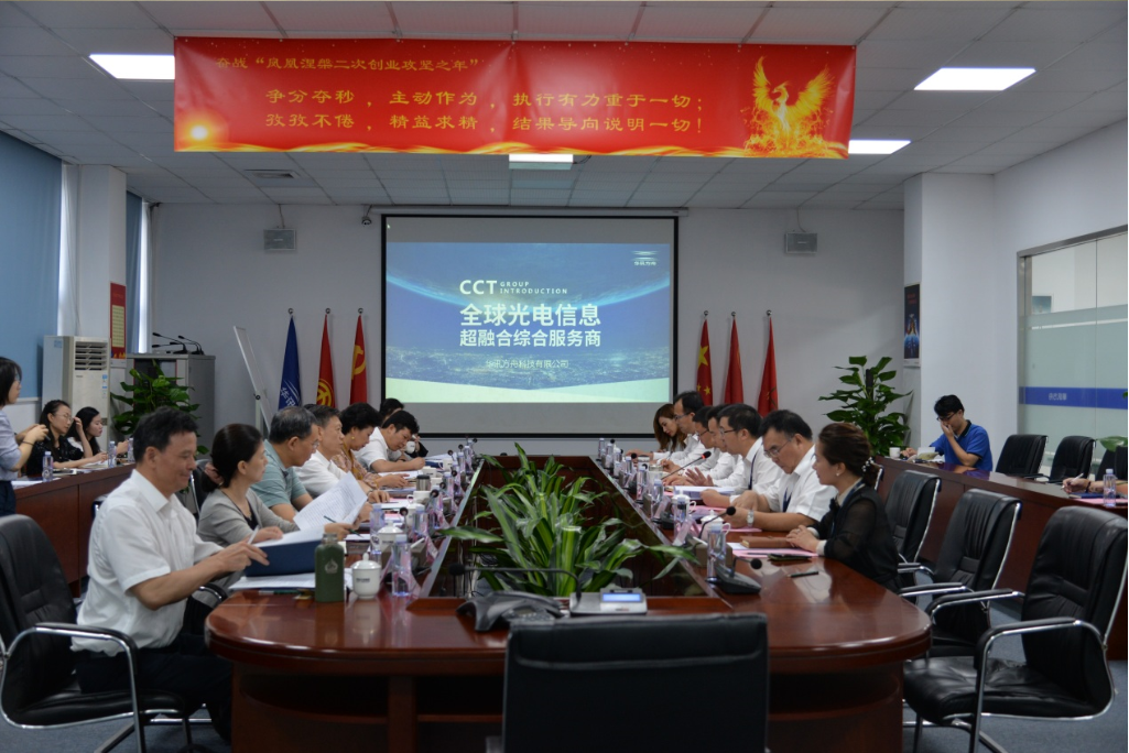 戴北方主席一行首先參觀了集團展廳,詳細了解了集團的發展情況。吳光勝董事長對集團在衛星通信、太赫茲、軍民融合等關鍵領域中所獲得的創新成果和關鍵性技術向戴北方主席進行了詳細匯報。戴北方主席對集團目前在太赫茲等基礎技術領域的研發成果表示肯定,并詳細詢問了太赫茲相關產品的市場推廣情況。